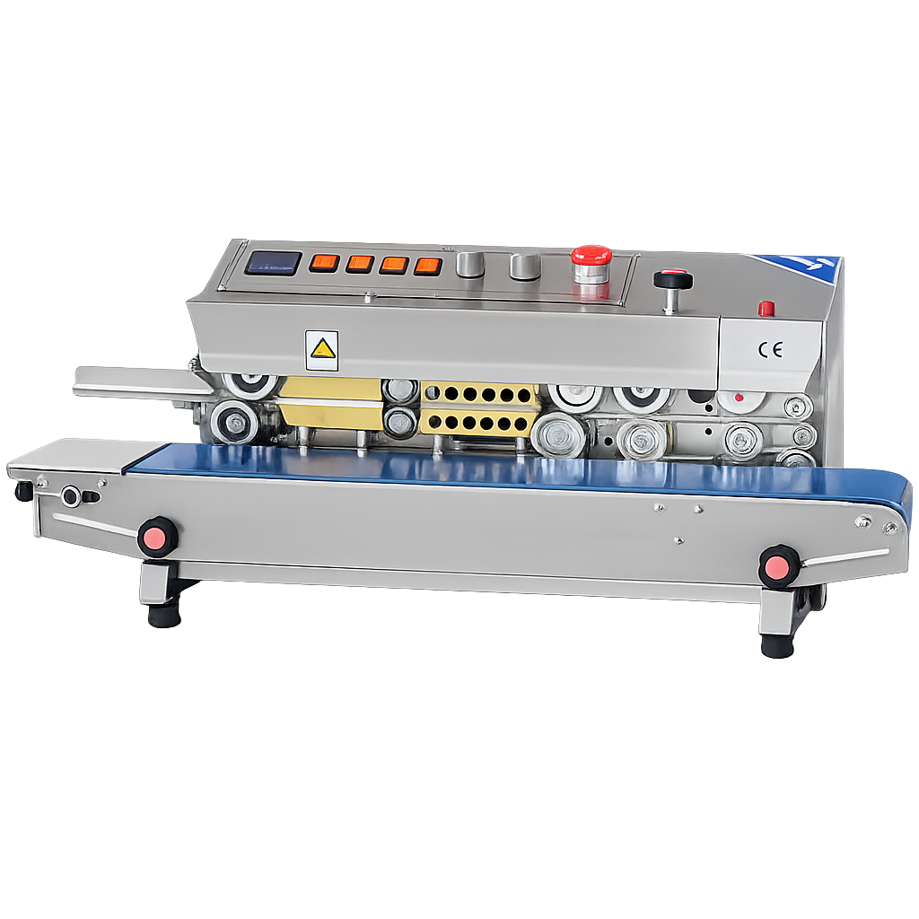 Η οριζόντια θερμοκολλητική μηχανή μπορεί να σφραγίσει όλα τα είδη θερμοσφραγιζόμενων υλικών, το οποίο υιοθετεί ένα σύστημα σταθερού ελέγχου θερμοκρασίας και μηχανισμό μετάδοσης ρύθμισης ταχύτητας χωρίς βήμα. Το μηχάνημα λειτουργεί με κωδικοποιητή στερεάς μελάνης για την εκτύπωση των έγχρωμων ετικετών κατά τη σφράγιση.