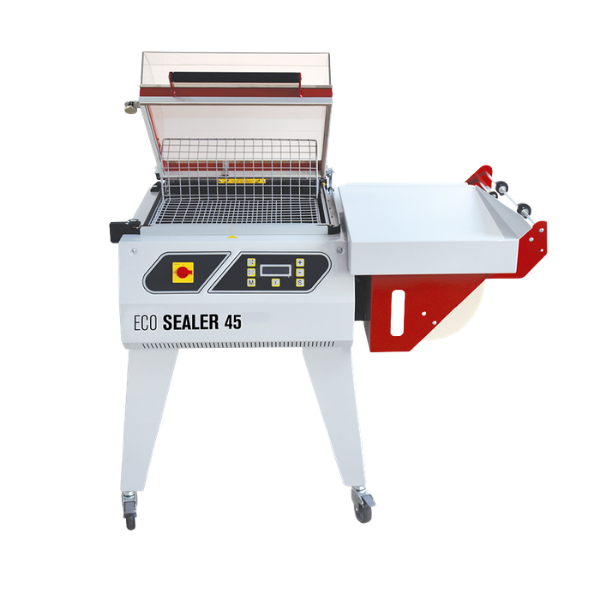 Η ECO SEALER 45 είναι μια ημιαυτόματη θερμοσυρρικνωτική μηχανή τύπου L-Sealer με θάλαμο, ιδανική για μικρές και μεσαίες παραγωγικές μονάδες (βιοτεχνίες, εμπορικές επιχειρήσεις κ.λπ.).