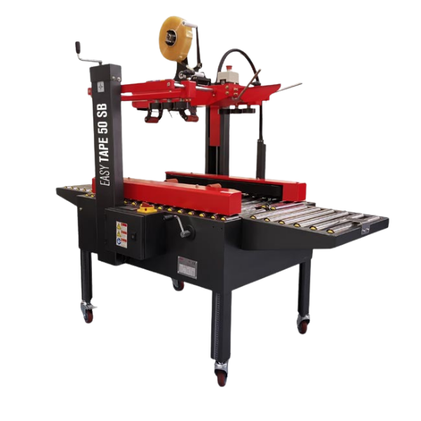 Η EASY TAPE 50 SB είναι ημιαυτόματη μηχανή ταινιοκόλλησης με χειροκίνητη ρύθμιση διαστάσεων, σχεδιασμένη για τη σφράγιση άνω και κάτω μέρους χαρτοκιβωτίων σταθερού μεγέθους τύπου American (RSC), με αυτοκόλλητη ταινία.