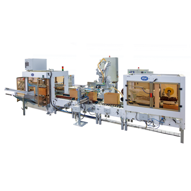 Η αυτόματη γραμμή διαμόρφωσης χαρτοκιβωτίων προσαρμόζεται τέλεια σε εντελώς αυτόματες γραμμές, όπου το κουτί που φτάνει σε έναν κύλινδρο είναι κεντραρισμένο, κλειστό και σύρεται προς τη μονάδα στεγανοποίησης, η οποία μπορεί να χρησιμοποιεί κόλλα στην έκδοση CS-HM ή κολλητική ταινία στην έκδοση CS- N.
