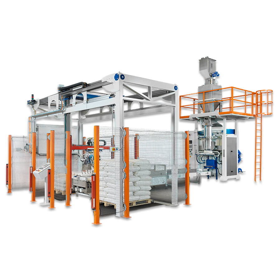 Οι γραμμές αυτόματης ζύγισης, σακούλας, παλετοποίησης και περιτύλιξης παλετών είναι μια ολοκληρωμένη λύση υψηλής απόδοσης, με στόχο να διευκολύνουν τα πράγματα και να υποστηρίζουν τον πελάτη σε όλες τις φάσεις.