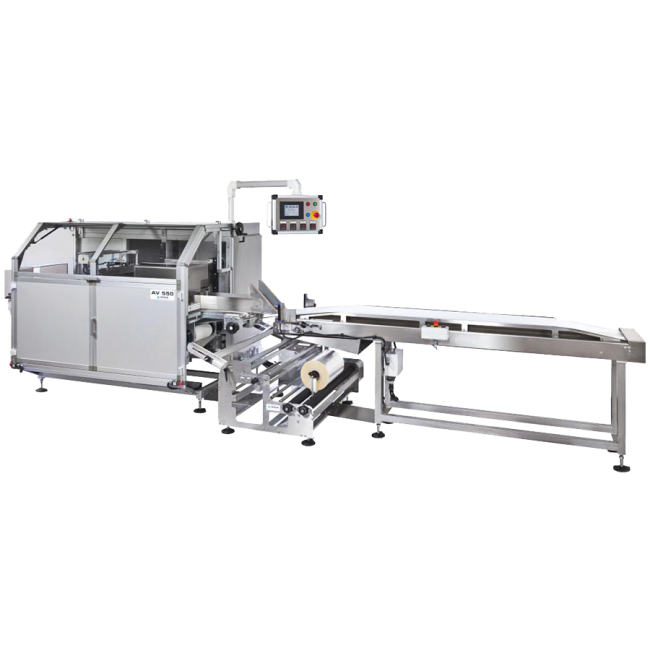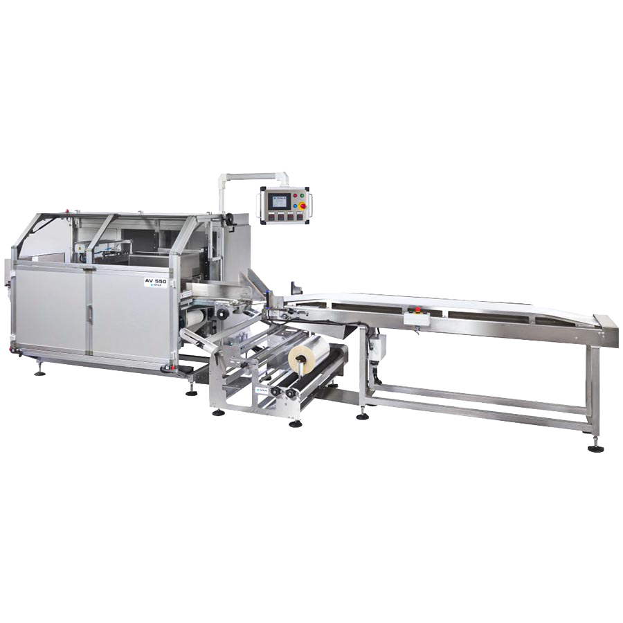 Το AV550 είναι μηχανή συσκευασίας εφοδιασμένη με κατώτερο πηνίο φιλμ, επομένως το προϊόν βρίσκεται ήδη στο φιλμ κατά την είσοδό του στο μηχάνημα. Αυτό το χαρακτηριστικό, μαζί με την ικανότητα του μηχανήματος να λειτουργεί με μεταβλητό βήμα, επιτρέπει την συσκευασία στον τομέα των οπωροκηπευτικών, προϊόντων όπως το λάχανο, το κουνουπίδι, το μπρόκολο, το iceberg, το σέλινο, το μάραθο, το πράσο , ή και προϊόντα αρτοποιίας, κρεατικών, τυροκομικών. Μπορεί να δημιουργήσει πακέτα 20x30 cm, 30x40 cm, 30x50 cm. Ένα εξελιγμένο αλλά ταυτόχρονα εύχρηστο ηλεκτρονικό σύστημα ελέγχει όλες τις λειτουργίες του μηχανήματος και τα εξαρτήματα: σιαγώνες σφράγισης για ειδικές εφαρμογές, κιτ για ταινία συρρίκνωσης, δυνατότητα τροποποιημένης ατμόσφαιρας. Με τη βοήθεια φωτοκύτταρου "δέσμης" το μηχάνημα εντοπίζει ευρέως προϊόντα σε φύλλα ή σε δέσμες, όπως οι μπανάνες. Το σύστημα τροφοδοσίας αποτελείται από έναν μεταφορικό ιμάντα, ο οποίος ήδη περιλαμβάνεται στο βασικό μηχάνημα. Το AV550 μπορεί να επεξεργαστεί διαφορετικούς τύπους πλαστικών μεμβρανών, όπως το πολυπροπυλένιο με δυνατότητα συγκόλλησης στη μία πλευρά ή στις δύο πλευρές.