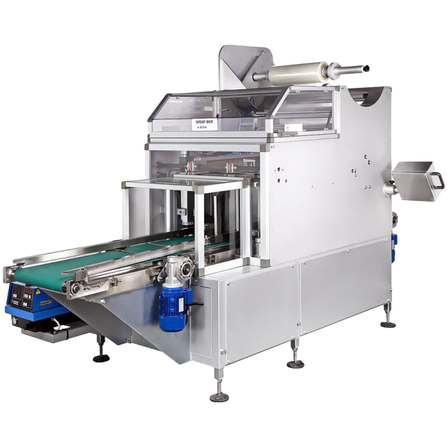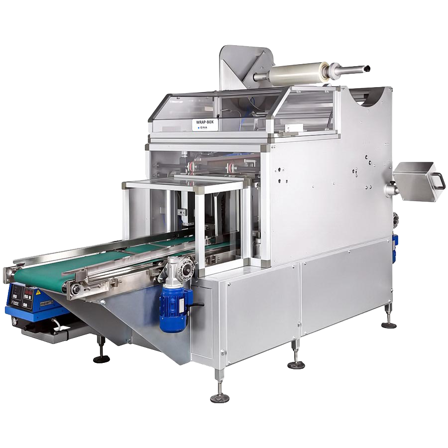 Το ρολό του φίλμ τοποθετείται στο άνω πλαίσιο του μηχανήματος και ξετυλίγεται στην ίδια κατεύθυνση κίνησης των κιβωτίων (δηλαδή της στενής πλευράς). Αυτό επιτρέπει την εφαρμογή προεκτυπωμένων φιλμ ή προεκτυπωμένων διχτυών + φιλμ.