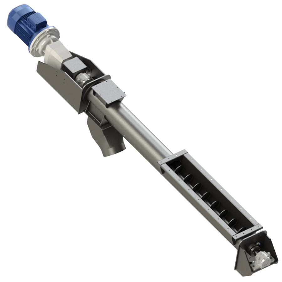 Ανάλογα με τον τύπο του προϊόντος, την απαιτούμενη χωρητικότητα και τον διαθέσιμο χώρο, μπορούμε να προσφέρουμε κεκλιμένους, οριζόντιους ή κάθετους κοχλιωτούς μεταφορείς.