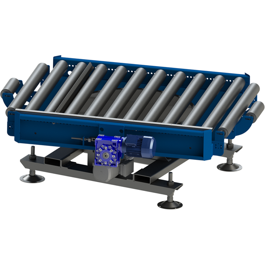 Μια πλατφόρμα κυλίνδρων ή αλυσίδας μπορεί να τοποθετηθεί στο ρουλεμάν περιστροφής, σύμφωνα με τις απαιτήσεις διάταξης και τον τύπο της παλέτας. Προσαρμόζονται εύκολα σε οποιαδήποτε ταχύτητα μεταφοράς, τύπο παλέτας και βάρος.