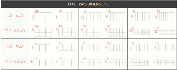 Brand new and revolutionary fully automatic Traysealer mod. TDF1650 & TDF1900: for the packaging of plastic, cartoboard & aluminium preformed trays, with on-reel plastic films lids, carton lids & reclosing-cap application option. Machine frame completely realized in stainless steel: metal sheets obtained by laser cutting, electrically welded holding elements.