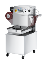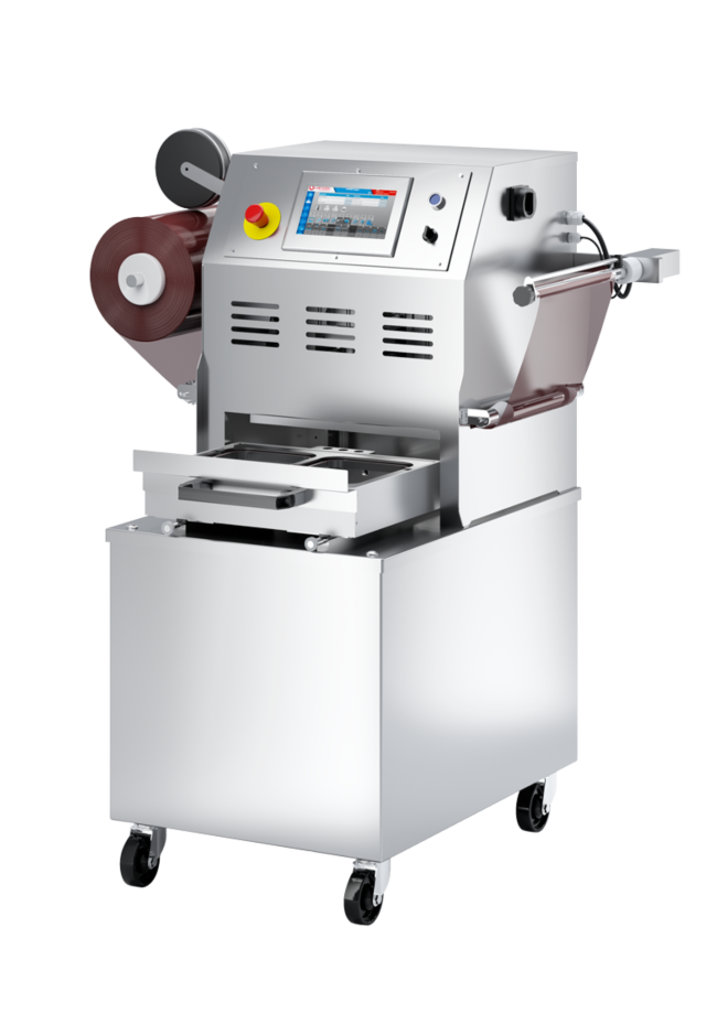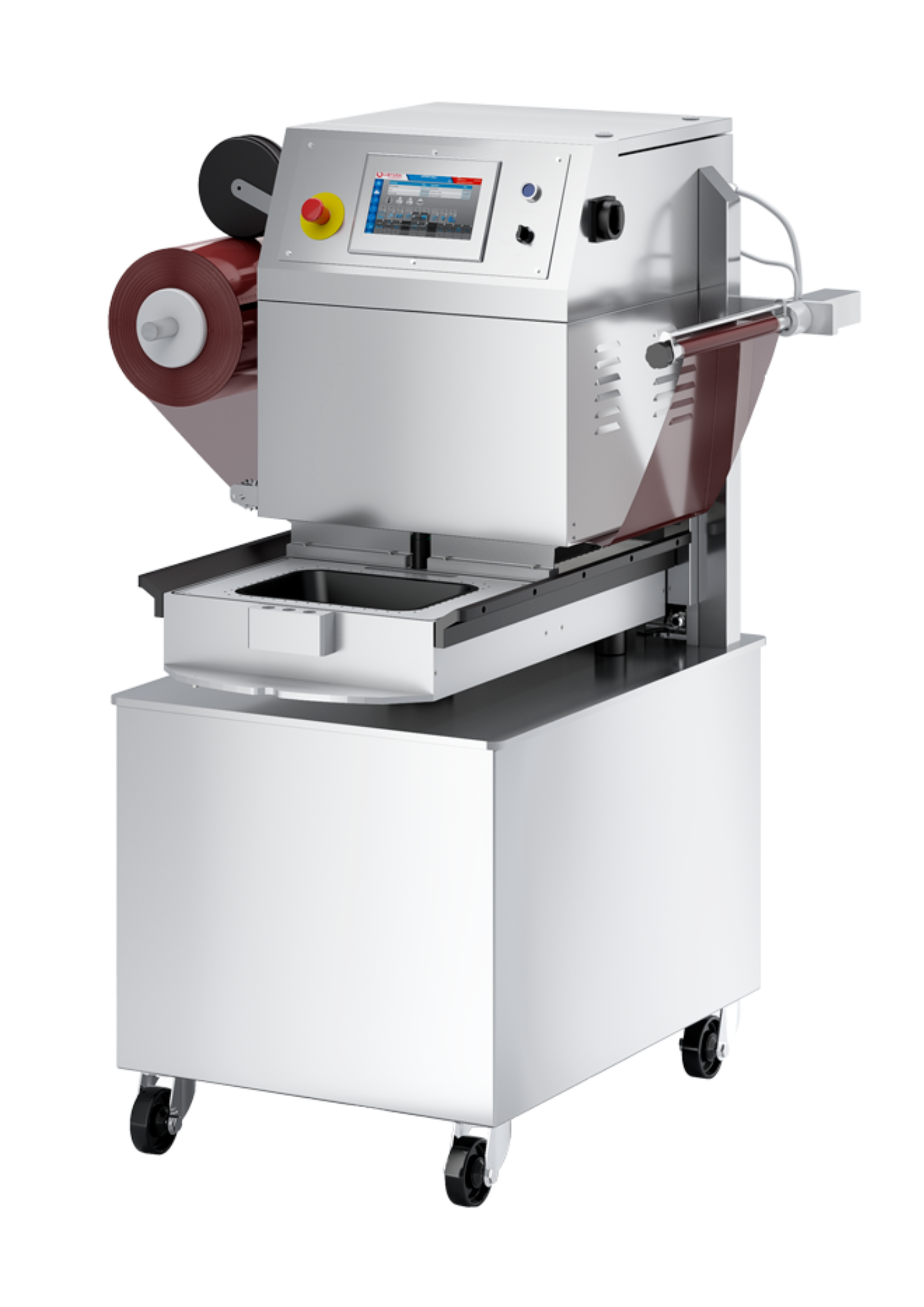 Suitable to small production output for the packaging under vacuum, modified atmosphere (MAP) or SKIN with premade trays.